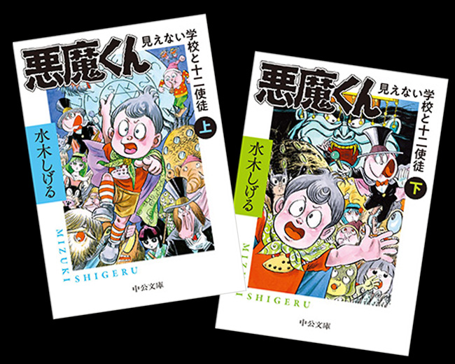 上巻は、”見えない学校”に招かれた悪魔くんが、メフィスト2世や12使徒と力をあわせ人間の幸せを奪う魔物たちに立ち向かいます。 下巻では、悪魔くんが仲間たちと共に東嶽大帝の魔城を目指します。 上下巻ともに9話づつの収録です。